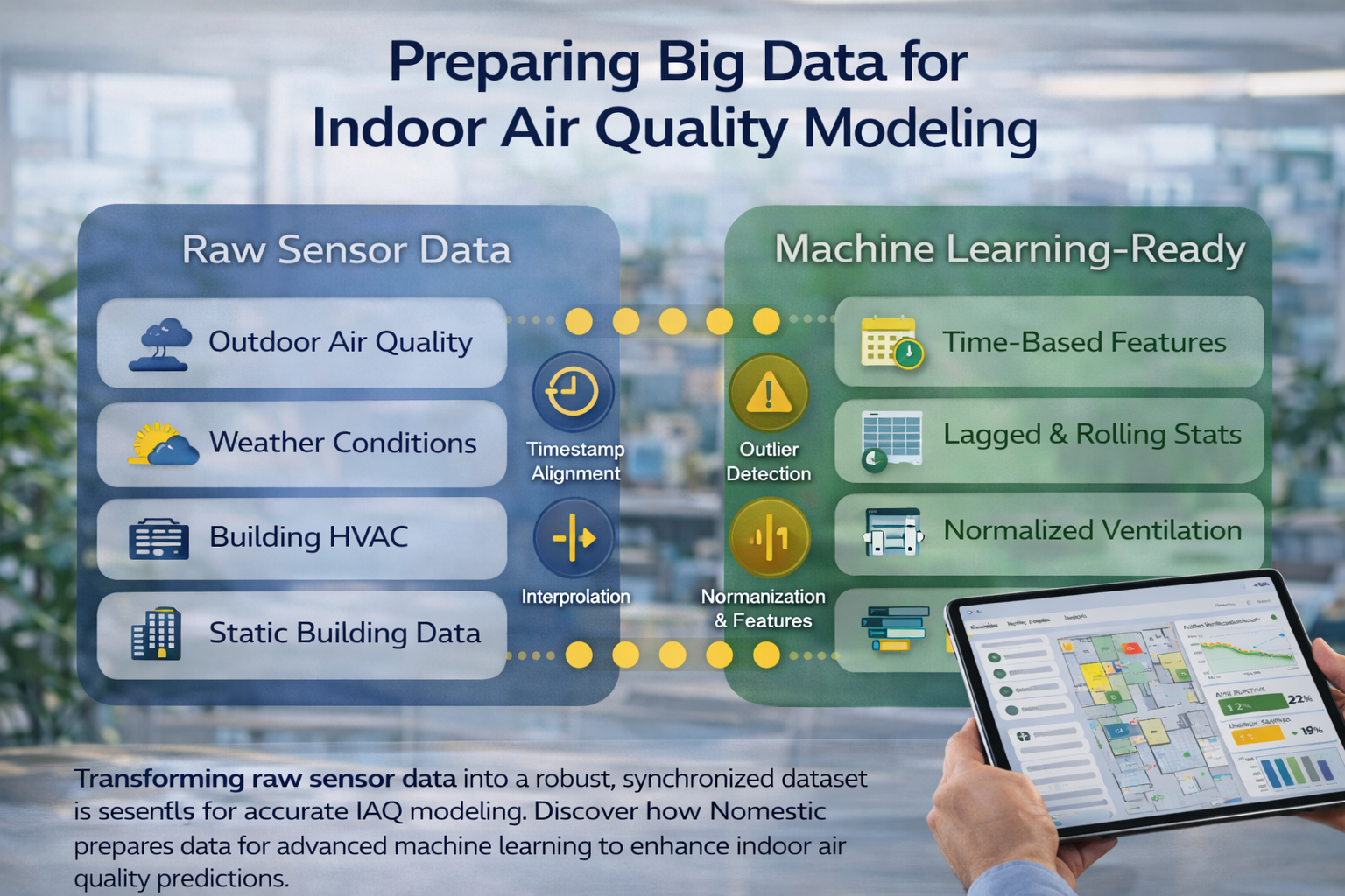 A strong IAQ data pipeline usually starts with timestamp alignment so all data follows the same timeline. Then comes data cleaning, where sensor spikes, invalid readings, and unrealistic values are removed. Missing data must also be handled carefully, often through interpolation or context-aware estimation. After that, variables are normalized so they can be used consistently in analytics and machine learning workflows.