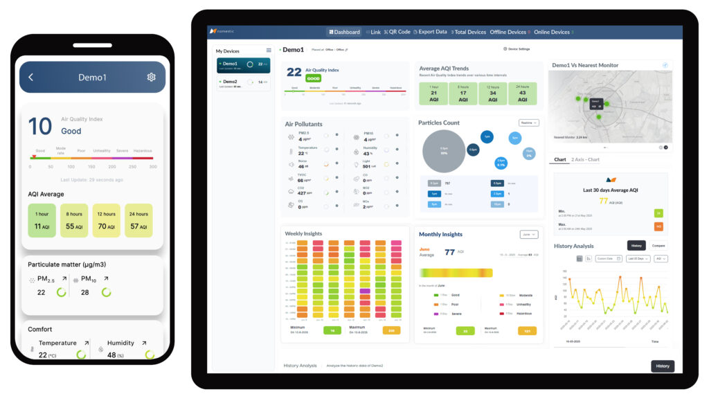 Transform your workplace into a healthier, more productive environment with Nomestic’s real-time indoor air quality monitoring solutions. By making room-level air quality and ventilation conditions visible, Nomestic helps improve employee wellbeing, support talent retention, and create cleaner, more comfortable office environments where people can perform at their best.